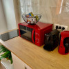Bucataria este mobilata si utilata complet, dotata cu toate electrocasnicele necesare.