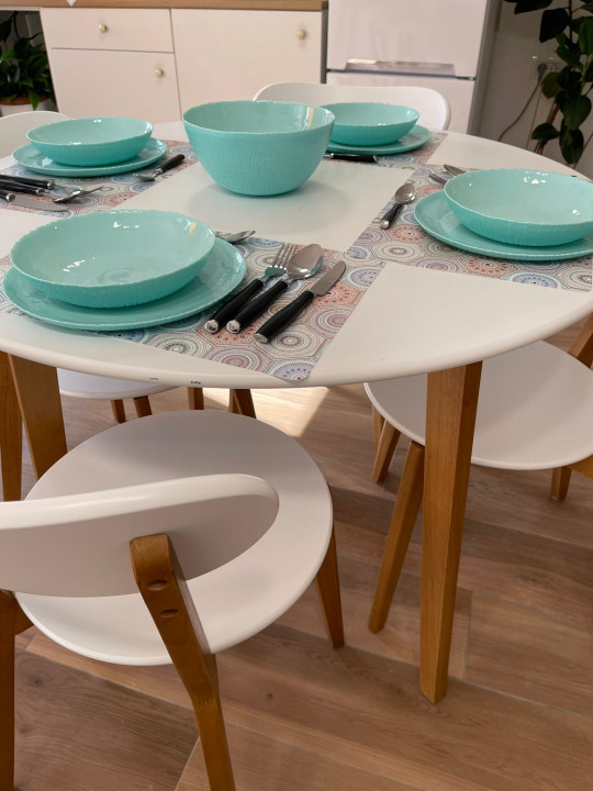Bucataria este mobilata si utilata complet, dotata cu toate electrocasnicele necesare.